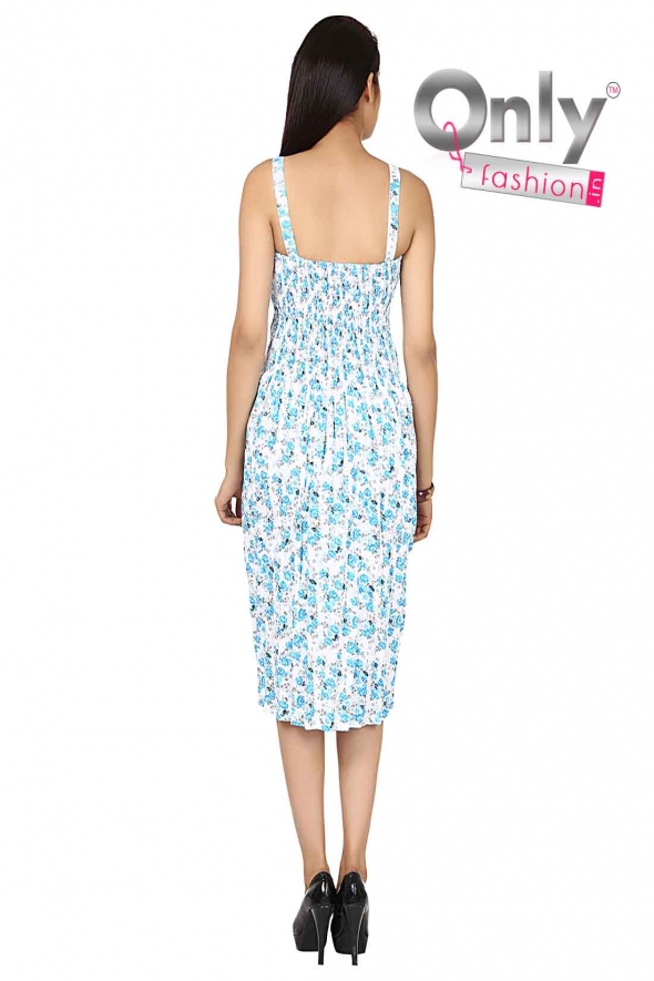 - Product Name: Designer White Skyblue Cotton Dress Midi