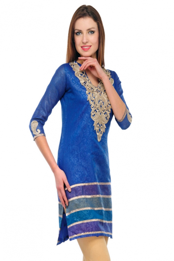 - Product Name: Designer Blue Chanderi Kurti by Only Fashion