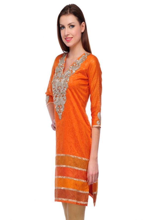 - Product Name: Designer Orange Chanderi Kurti by Only Fashion