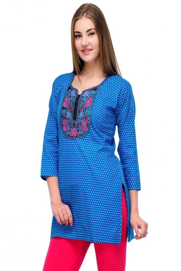 Top Fabric :- Cotton, Color :- Blue, Size:- S, M, L, XL, Type :- Kurti/Kurta, Estimated Delivery Time : 6-8 working days