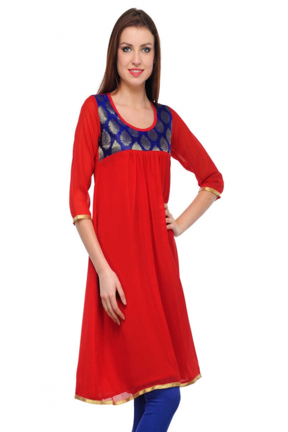 Top Fabric :- Jacquard, Color :- Red Blue, Size:- S, M, L, XL, Type :- Kurti/Kurta, Estimated Delivery Time : 6-8 working days