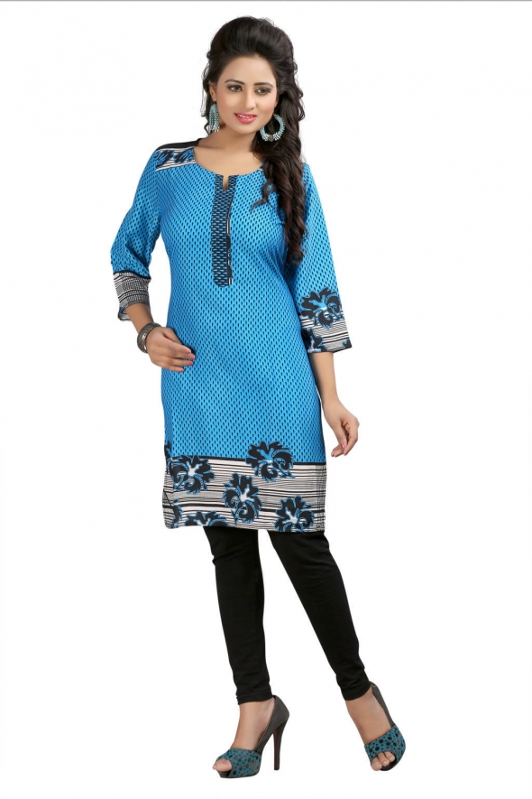 Top Fabric :- Crepe, Color :- Firozi, Size:- S, M, L, XL, Type :- Kurti/Kurta, Estimated Delivery Time : 6-8 working days