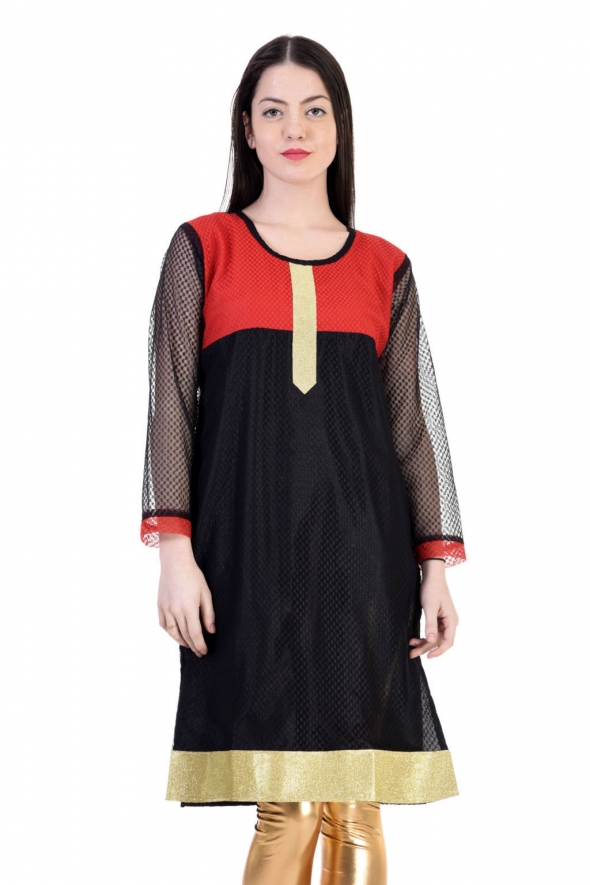 - Product Name: Designer Red-Black Net Kurti by Only Fashion