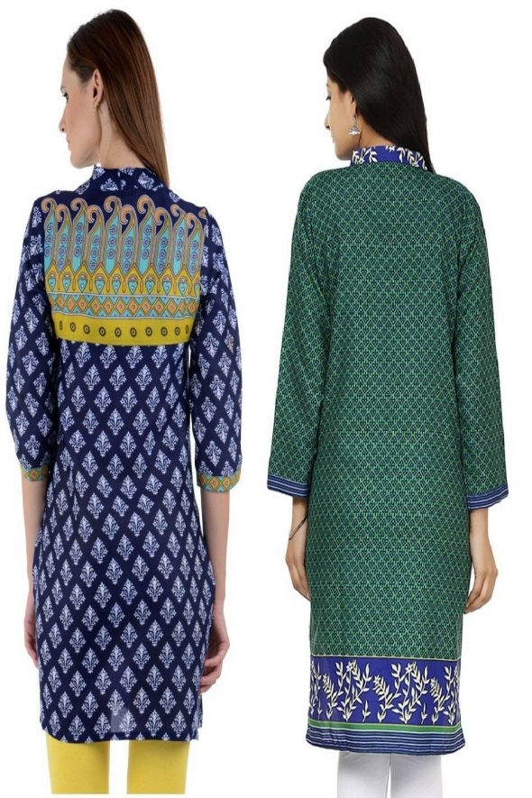 - Product Name: Designer Green-Blue Crepe Pack of 2 kurti by Only Fashion