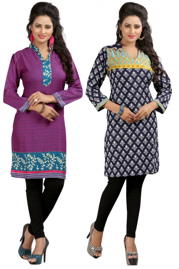 - Product Name: Designer Pink-Blue Crepe Pack of 2 kurti by Only Fashion