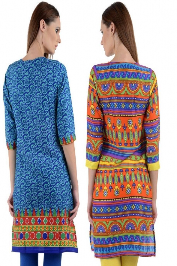 - Product Name: Designer Sky Blue- Multicolor Crepe Pack of 2 kurti by Only Fashion