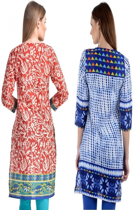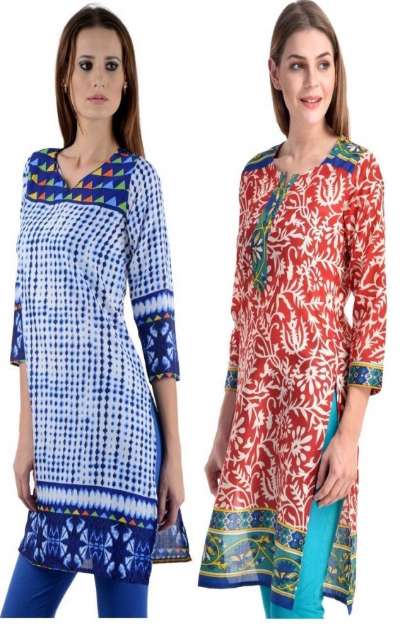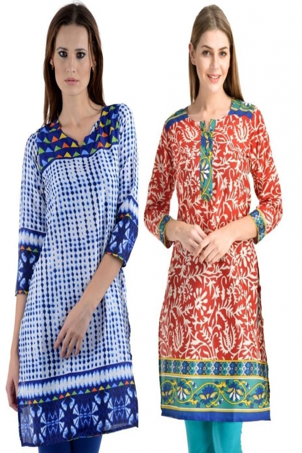 - Product Name: Designer White Blue-Red Turq Crepe Pack of 2 kurti by Only Fashion