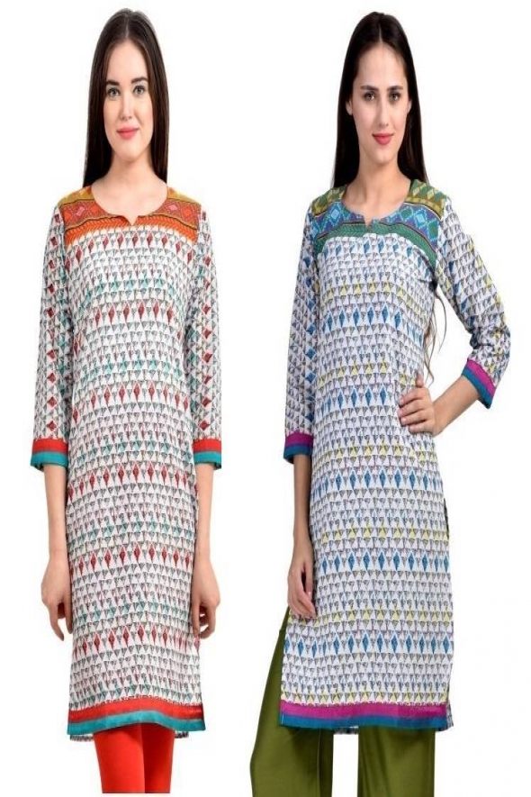- Product Name: Designer Orange - Turq Crepe Pack of 2 kurti by Only Fashion