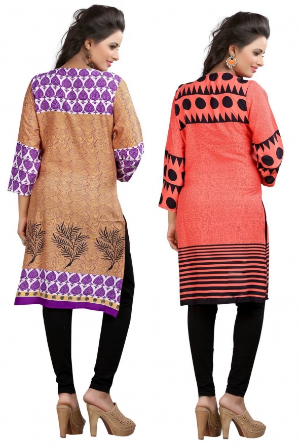 - Product Name: Designer Purple-Beige-Peach Crepe Pack of 2 kurti by Only Fashion