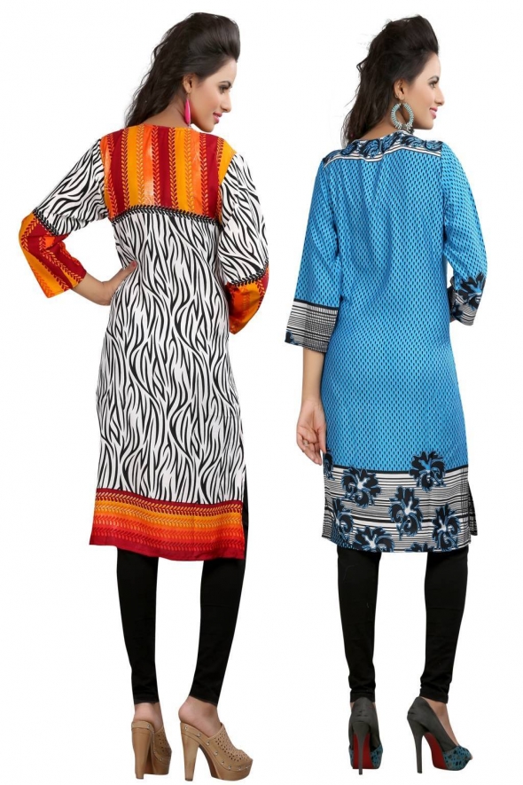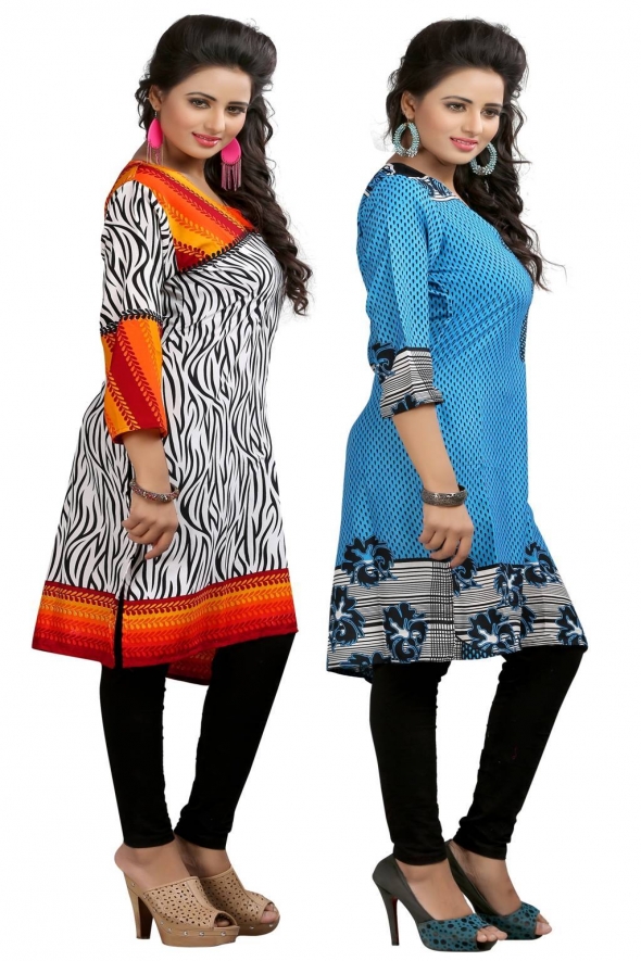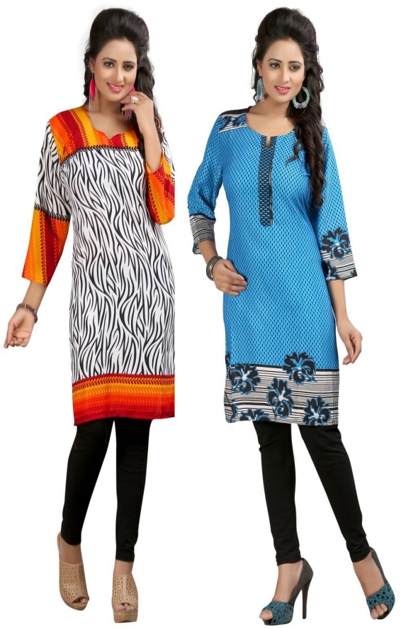 - Product Name: Designer Orange white - Firozi Crepe Pack of 2 kurti by Only Fashion