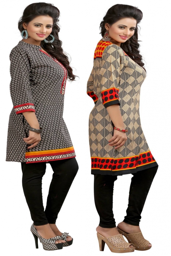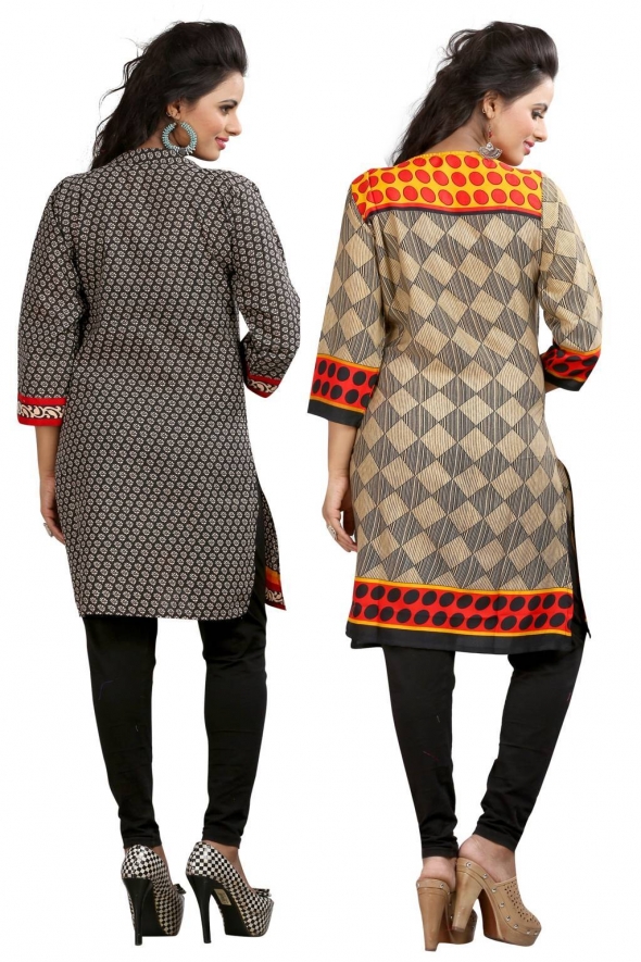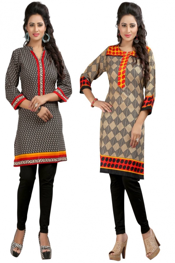Designer Black - Multicolor Crepe Pack of 2 kurti by Only Fashion
